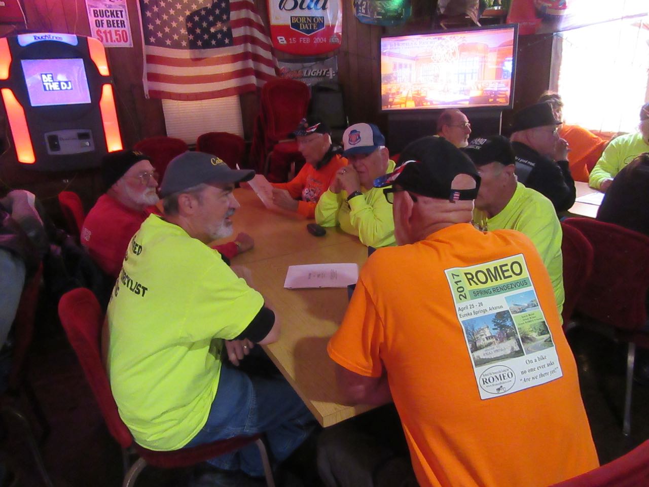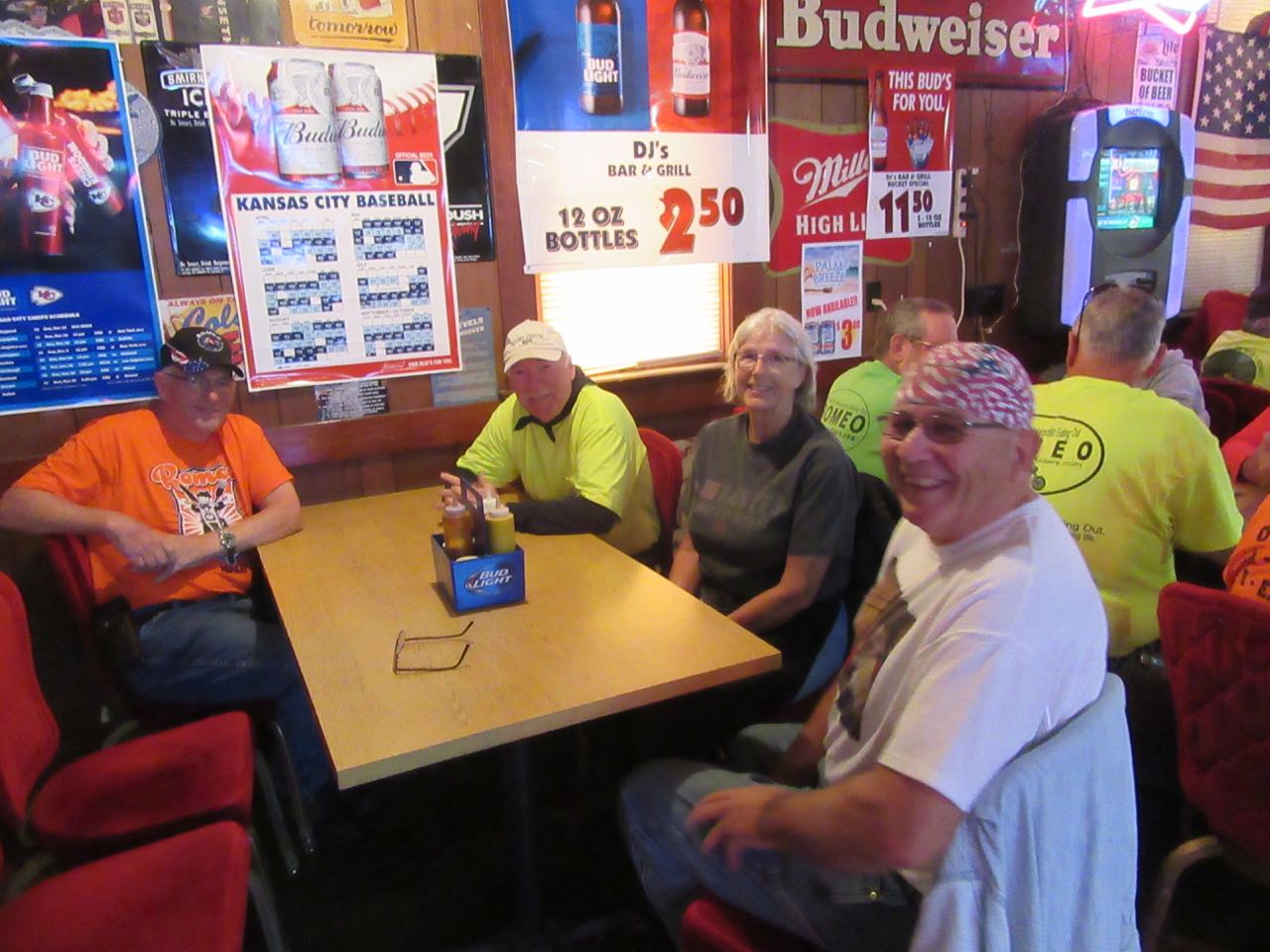 I guess we can add another one to the list to visit once in awhile. Although DJ's Bar & Grill doesn't look like much from the outside, since we're not recommending places for Architectural Digest, I guess we can base our review on how good the burgers are and if they can take care of a bunch of hungry ROMEOS. They seemed to pass both of those with flying colors. Everyone seemed to enjoy DJ's, although the parking lot seemed to be a little too rustic for Larry #2 because he had a hard time finding two lines to park between because of all the gravel. But once we got him inside he seemed to do fine!