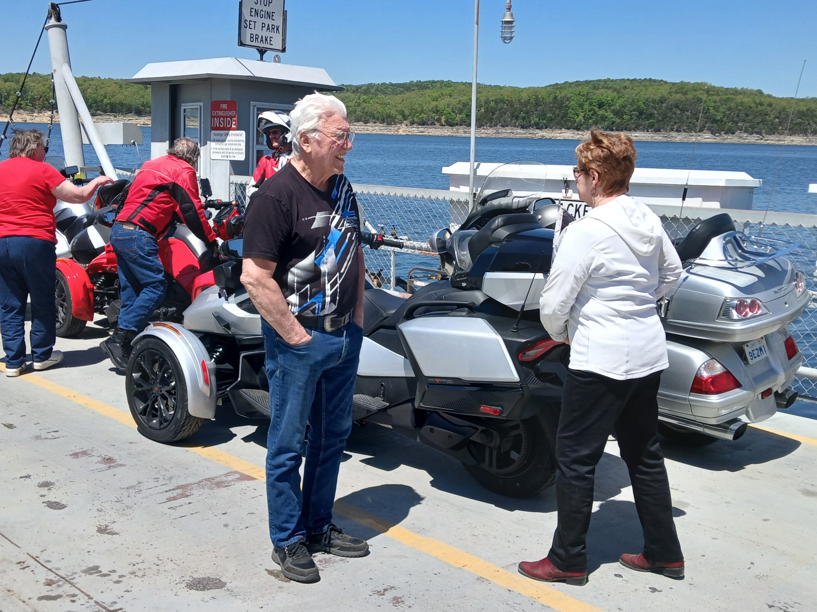 12 of us and our newest romeo, Larry from Harrison. 4 of us took the Peel Ferry back and met up with another mostly Spyder group--Mark had a new road "U" off of 125 that took us through Theodosia on 160 . A few photos: